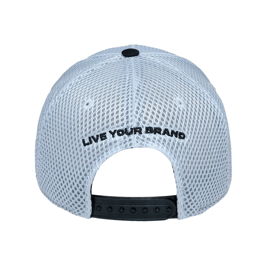 Boné aba curva aberto, tela espumada, estampa frontal bordado com relevo, estampa traseira em bordado, regulador de pino plástico